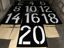 20.9.2018 Numerotaulujen tekoa. Parittomat numerot kuivumassa Liimataisen pajan lattialla.
