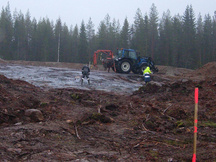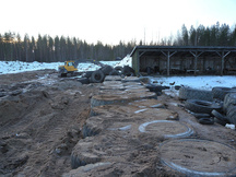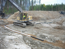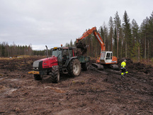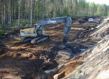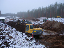 6.9.2017 Tasainen maasto ja baijerilaismalliset kallionselät tekevät salaojituksesta melkoista pujottelua, mutta mikä tärkeintä, huoltotietä ja vasemman vallin tyveä päästään viimeinkin laittamaan lopulliseen paikkaansa.