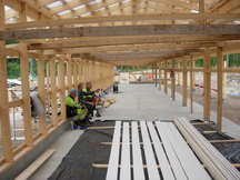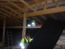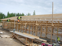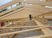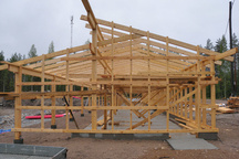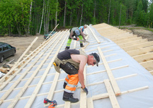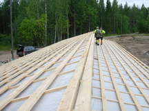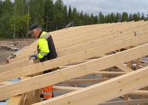 26.7.2017 Seppo Minkkinen kiinnittämässä kattotuolien naulauslevyjä.