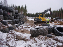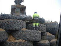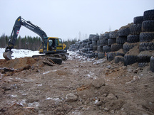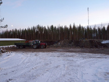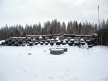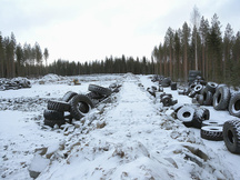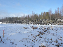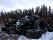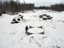 21.12.2016 Pyöräkuormaajan ja traktorin renkaita odottamassa siirtoa vasempaan sivuvalliin 100 metrin luodikkoradan kohdalle.