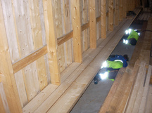 20.9.2017 Viimeisiä seinälautoja menossa pohjaväriin. Maalauskeli on mitä mainioin, lämpötila +6 °C ja kosteus 99 %.