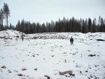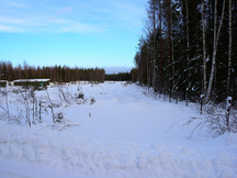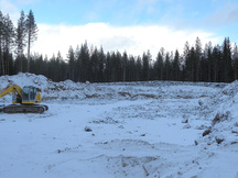 30.1.2016 Ratapohjaa puuston poiston jälkeen. Etuvasemmalla näkyy 100 metrin luodikkoradan katos.