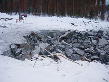 18.2.2017 Tämän "notkanteen" täytti vielä hiljattain paikoin kolme metriä paksu kallio.