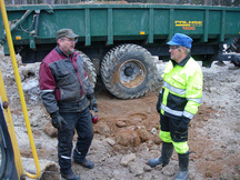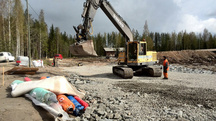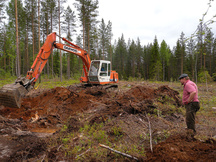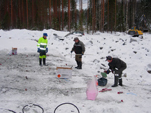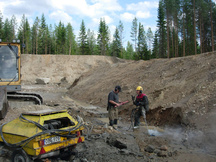 28.5.2016 Kallion etäisyyttä maanpinnasta selvitetään koekaivausten avulla.