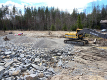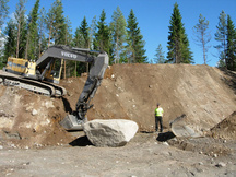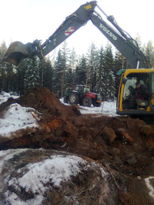 26.7.2017 Salaojituksen päällä oleva louhe peitetään viiralla ja maalla. Heikki Hämäläinen puikoissa.