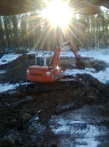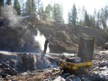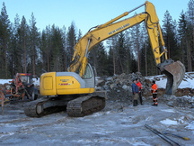 8.11.2016 Louhinnan esivalmistelua. Kalliota paljastetaan kahden talkookaivurin voimin.