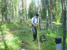 7.9.2014 Seppo Strandman tunnustelemassa maaperää 300 m ratatontilla.