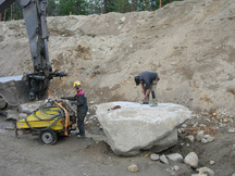 16.8.2017 Seppo Strandman panostamassa siirtolohkaretta taustavallin edessä.