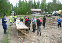 1.8.2018 Kahvitauolla ennen betoniauton saapumista.